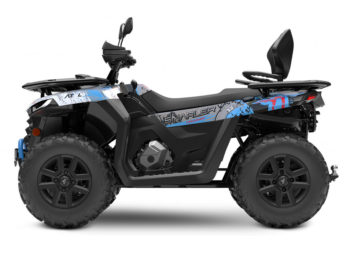 EPS električni servo upravljač, nagibna karoserija s nagibnim i uklonjivim prednjim i bočnim stranama, posebno snažno vitlo od 4500 lbs, prednji zaštitni okvir, puno vjetrobransko staklo, čelični zaštitni bočni okviri, kotači od 14″ sa šesteroslojnim gumama, plastični krov otporan na UV zračenje, preklopna zaštita za noge , ROPS-certificirani sigurnosni kavez, uređaj za vuču s okom, klupa sa sigurnosnim pojasevima, kutija za odlaganje na instrument ploči, prednja svjetla s dva projektora, prednja svjetla LED-Matrix, zvučni signal za vožnju unazad.